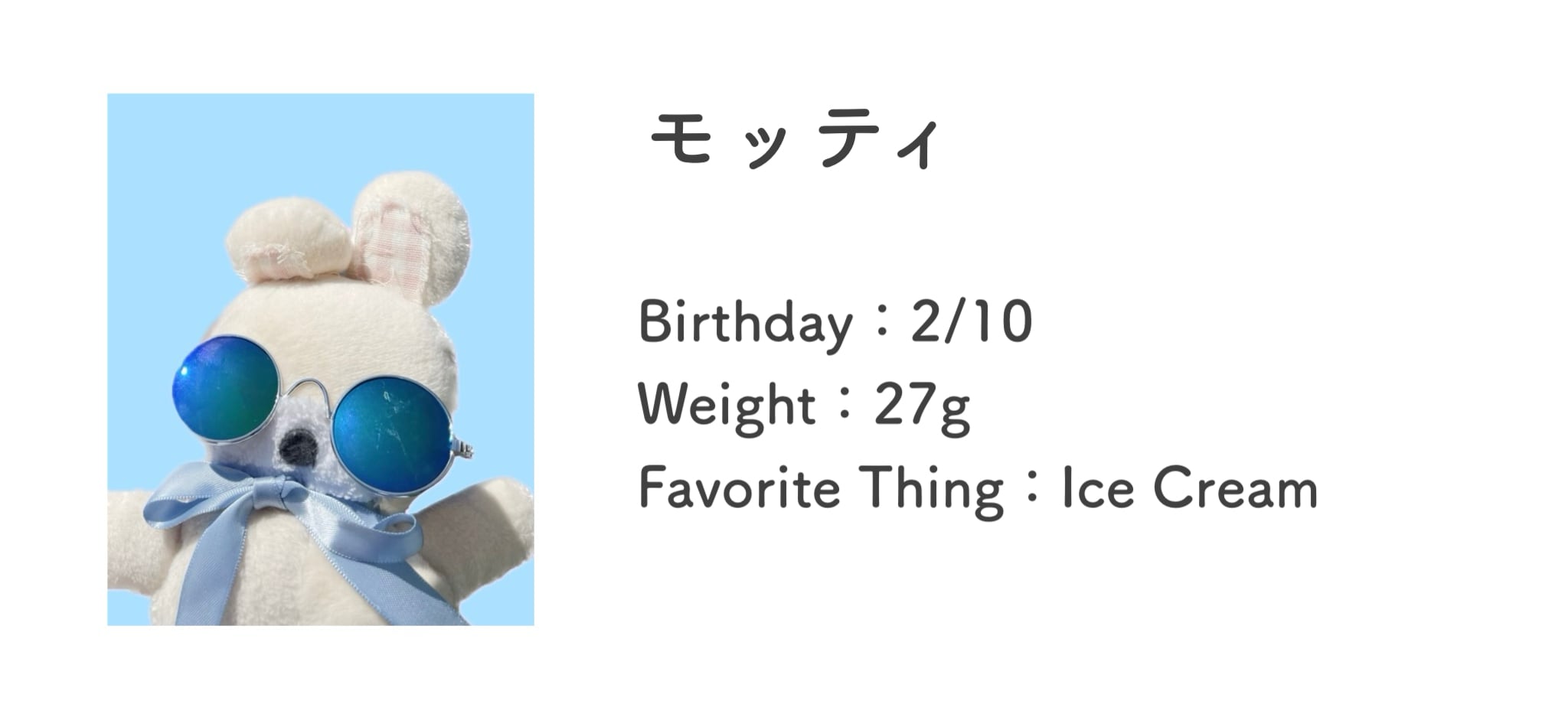 うさぎのぬいぐるみのモッティ。